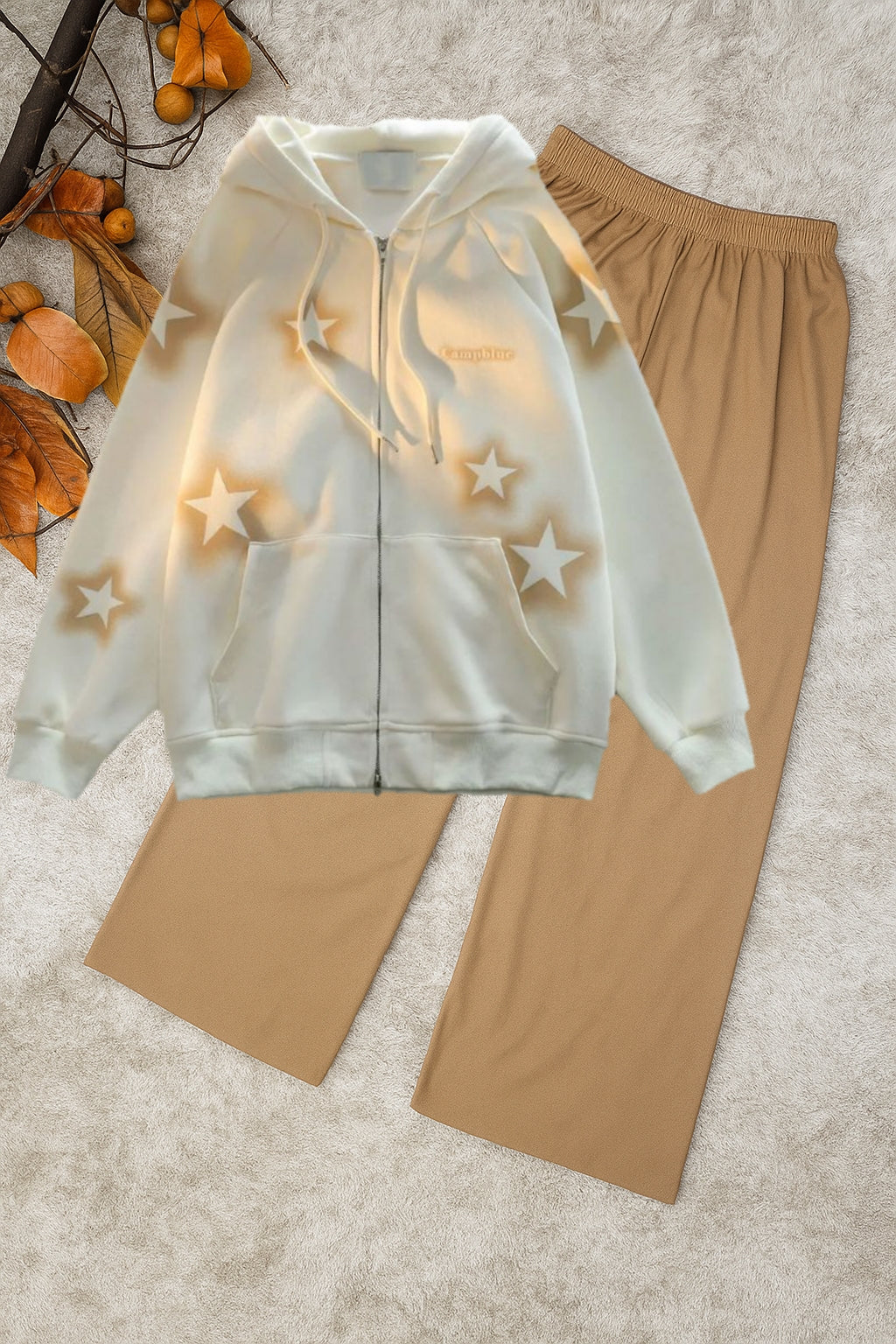 Brown Butterfly Hoodie With Beige Wide Leg Trouser